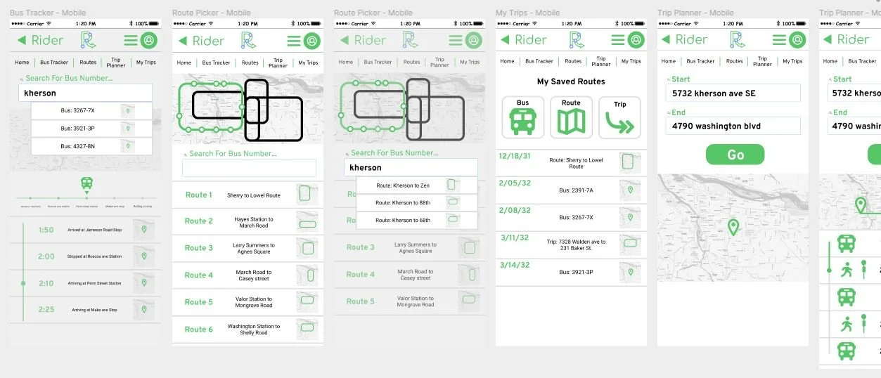 Work on the wireframes began after initial research was completed. The design had to quickly and effectively convey information for users that were in a hurry to catch their bus.